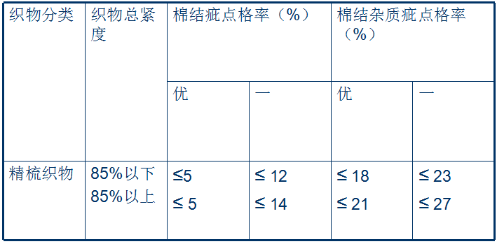 ●外觀質(zhì)量檢驗(yàn)包括棉結(jié)疵點(diǎn)格率、棉結(jié)雜質(zhì)疵點(diǎn)格率、布面疵點(diǎn)。