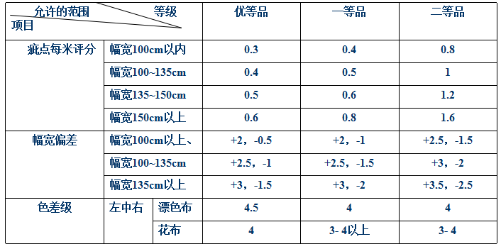 ●內(nèi)在質(zhì)量和外觀質(zhì)量分別評(píng)等后,以最低的品等作為該匹布等級(jí)。