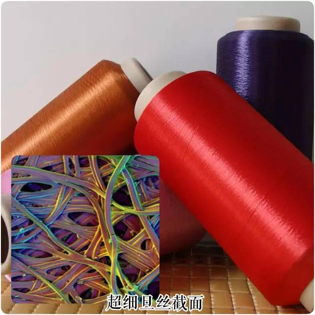 普通滌綸長絲的截面是圓形的,構(gòu)成的織物比較平滑,有蠟狀感,易產(chǎn)生極光,以其織造的面料與真絲面料有較大差別。