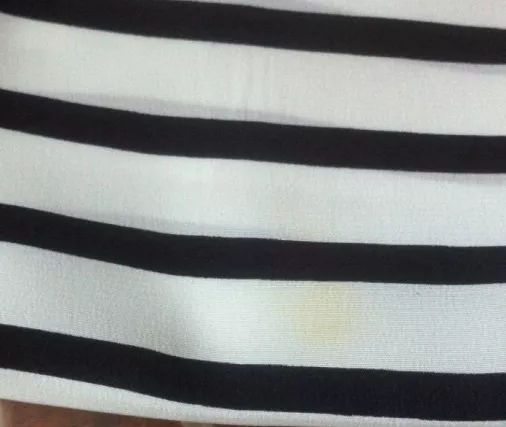 1、正常洗滌泛白:深色衣服,特別是黑色,長期洗滌表面顏色氧化,與黑色形成對比,產(chǎn)生泛白特明顯。 2、面料保存染料氧化:或在溫濕度情況下接觸蒸汽、酸堿物質(zhì),表面染料氧化,造成泛白。 |