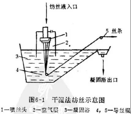 干濕法紡絲是溶液紡絲中的一種,又稱干噴濕紡法,它將濕法紡絲與干法紡絲的特點(diǎn)相結(jié)合,特別適合于液晶高聚物的成型加工,因此也常稱為液晶紡絲。
