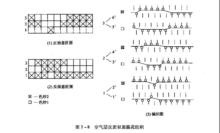 復(fù)合組織是由兩種或兩種以上的織物組織復(fù)合而成。它可以由不同的基本組織、不同的變化組織、不同的花色組織復(fù)合而成。復(fù)合組織可以根據(jù)各種組織的特性復(fù)合成所要求的組織結(jié)構(gòu)。羅紋組織與平針組織復(fù)合成羅紋空氣層組織,雙羅紋組織和平針組織復(fù)合而成雙羅紋空氣層組織。這類(lèi)組織的織物緊密厚實(shí),彈性好,保暖性好橫向延伸性較小,尺寸穩(wěn)定性較好。若空氣層組織外層采用棉紗編織,內(nèi)襯高彈絲,是保暖內(nèi)衣的極好面料;若正反面采用不同類(lèi)型的紗線編織,則尤其適合用作外衣面科。