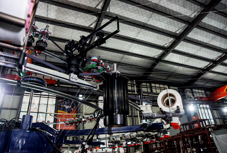 大圓機(jī),學(xué)名針織圓形緯編機(jī)或叫做針織圓緯機(jī),是一種常見的紡織設(shè)備。傳統(tǒng)大圓機(jī)的送紗機(jī)構(gòu)中,送紗鋁盤的軸與主動(dòng)力電機(jī)通過(guò)同步帶和同步輪進(jìn)行傳動(dòng),由主動(dòng)力電機(jī)帶動(dòng)送紗鋁盤轉(zhuǎn)動(dòng),同時(shí)送紗鋁盤又通過(guò)同步輪帶動(dòng)輸紗器進(jìn)行轉(zhuǎn)動(dòng)。大圓機(jī)進(jìn)行工作時(shí),需要對(duì)輸送的紗線長(zhǎng)度進(jìn)行監(jiān)控,紗長(zhǎng)是保證織物質(zhì)量的重要指標(biāo),在上述的送紗結(jié)構(gòu)中,紗長(zhǎng)調(diào)節(jié)需要機(jī)械工程師憑借經(jīng)驗(yàn)更換不同尺寸的送紗鋁盤,不但對(duì)工程師的技能要求較高,而且更換送紗鋁盤的拆裝機(jī)械步驟也比較繁瑣。同時(shí),傳統(tǒng)大圓機(jī)的送紗機(jī)構(gòu),需要外掛測(cè)紗器進(jìn)行紗長(zhǎng)計(jì)算,不但增加了生產(chǎn)設(shè)備的成本,同時(shí)由于測(cè)紗器在測(cè)紗時(shí)靠的是測(cè)紗鏡頭傳輸?shù)碾娒}沖信號(hào),一般一圈是30個(gè)電脈沖,計(jì)算精度為輸紗輪外周的30分之一,因此紗長(zhǎng)計(jì)算并不夠精確。