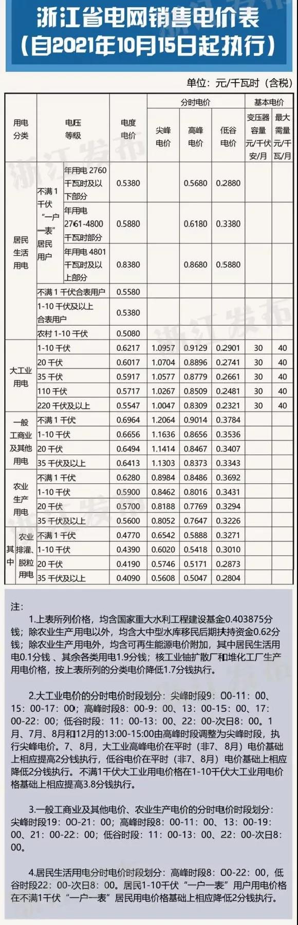 浙江:電價(jià)采取分時(shí)段收費(fèi)