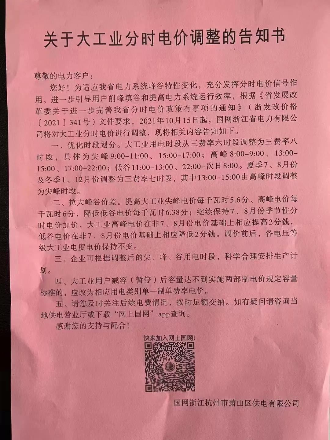 蕭山部分企業(yè)收到電價(jià)調(diào)整通知書