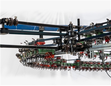 采用封閉式四跑道三角設(shè)計(jì),配備成圈,集圈和浮線三角。整體升降可方便和快速的調(diào)整織物的克重;按客戶設(shè)計(jì)的喂紗嘴,使得添加氨綸更加得心應(yīng)手。采用人性化設(shè)計(jì),附加的喂紗中間過渡圈,便于操作人員的觀察和穿紗,而不致使紗線碰到操作人的頭部;