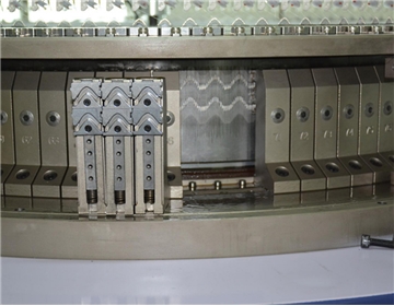 普通單面針織大圓機具有單針道(一個跑道)、兩針道(兩個跑道)、三針道(三個跑道)、四針道以及六針道機型,現有在針織企業(yè)中大多使用的是四針道單面大圓機。它是利用織針和三角的有機排列組合來編織各種新型面料的。